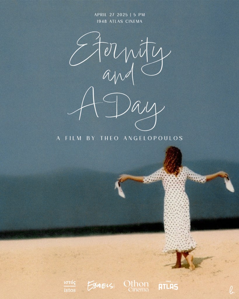 In collaboration with Othon Cinema, istos film, and the EMEIS Cultural Collective, the masterpiece Eternity and a Dayby legendary director Theo Angelopoulos—one of the most iconic films in the history of cinema—will be screened in a special showing on the occasion of Angelopoulos’s birthday at the historic 1948 Atlas Cinema!